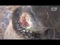 Many of the animals have open sores. Many of the animals have open sores. Many of the animals have open sores.