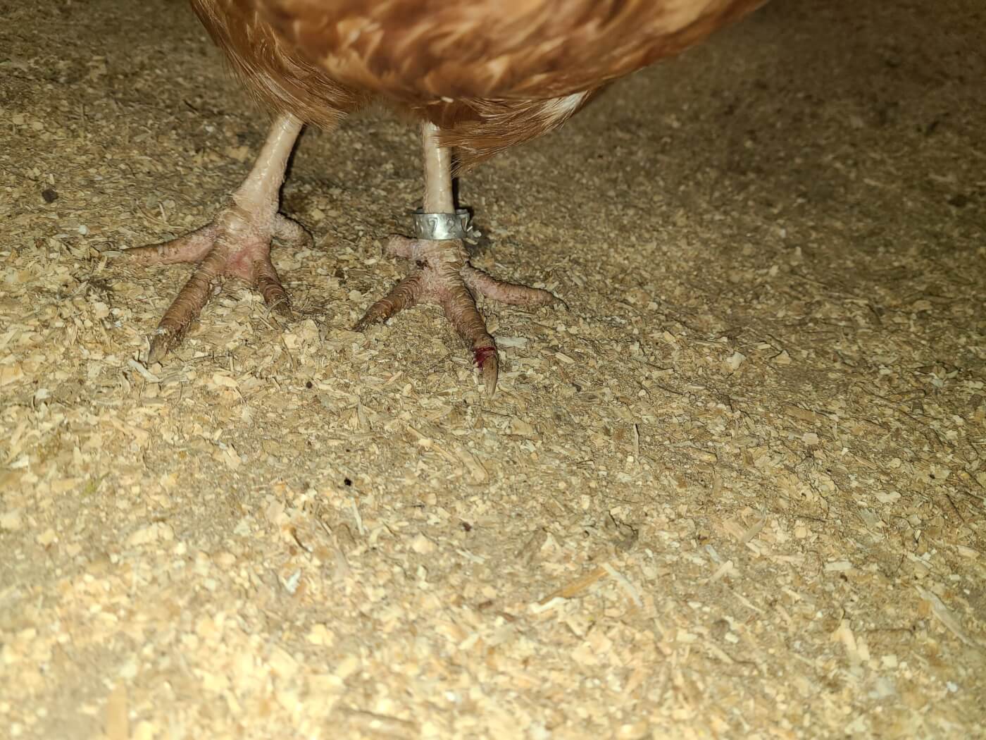 Many chickens – who were kept in a barn stall that often went uncleaned and that a worker said was “drenched” every time it rained – had scaly legs and feet, some of which were swollen and even bloody. The worker said the chickens had leg mites and bumblefoot, a painful infection caused by bacteria found in wet, dirty bedding, but that they had not been seen by a veterinarian.